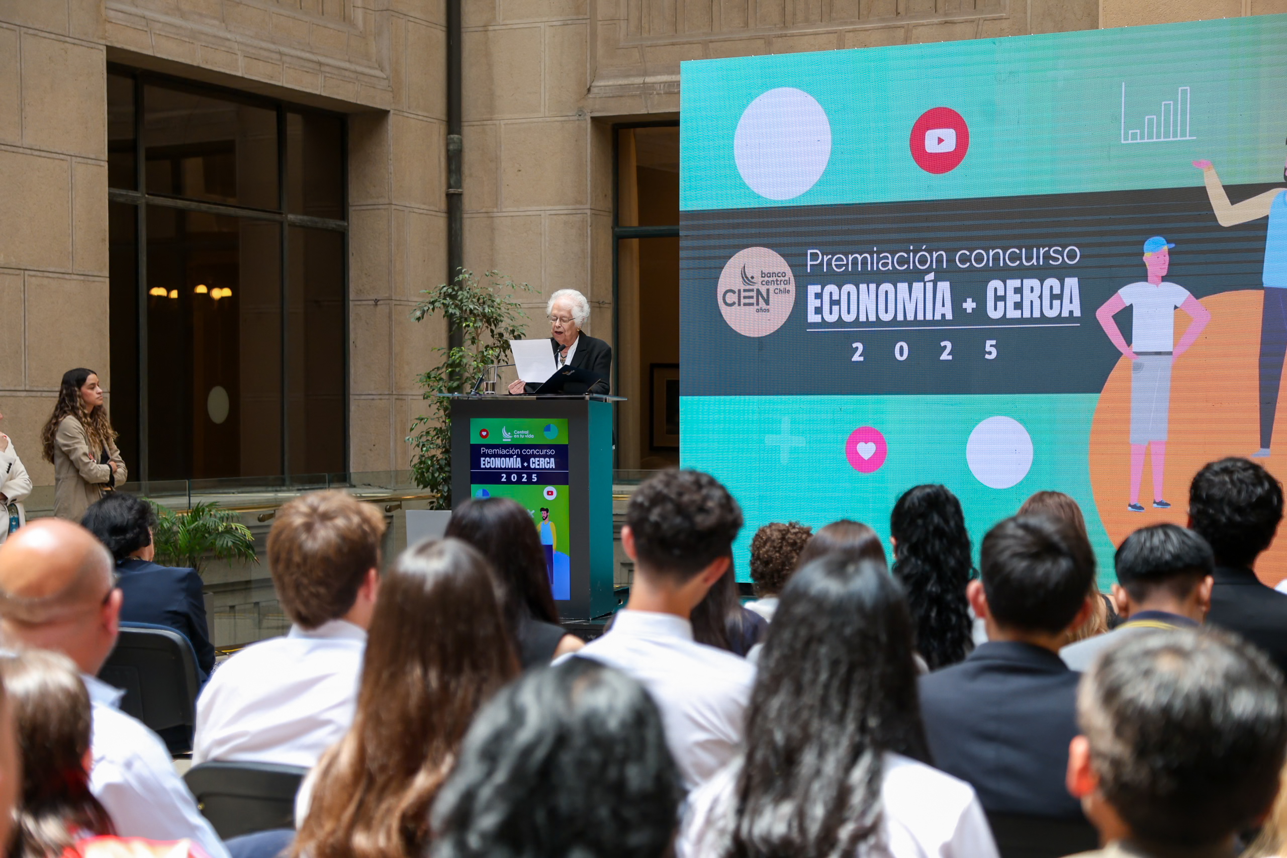 El concurso “Economía + cerca” del Banco Central de Chile es un certamen escolar dirigido a estudiantes de enseñanza media de colegios municipales, subvencionados y particulares de todo el país. Su objetivo es fomentar el interés y el aprendizaje de los alumnos sobre los principales temas económicos cotidianos relacionados a las funciones del Banco Central de Chile, invitándolos a explicarlos de forma creativa y en un lenguaje simple. Esta iniciativa forma parte del programa de educación financiera “Central en tu vida”, el cual busca entregar educación económica y financiera a las personas, a través de distintas herramientas y recursos, usando un lenguaje de más fácil comprensión.